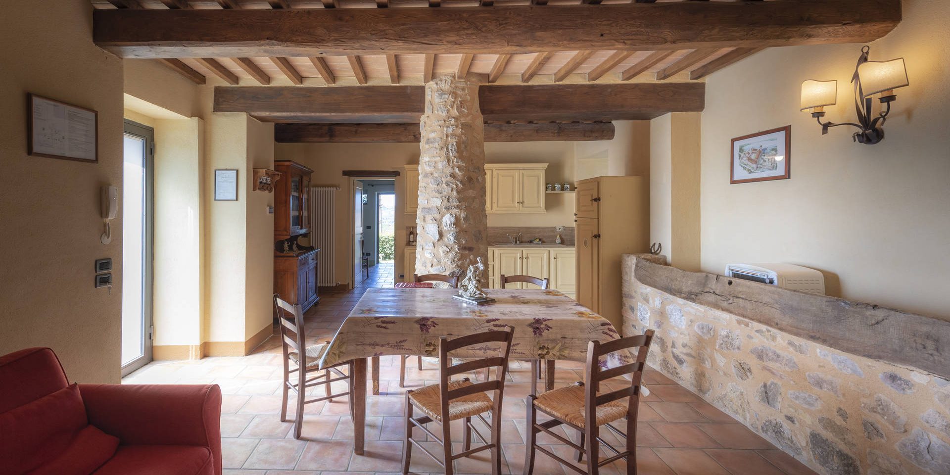 L’appartamento, di circa 55 mq., è situato al piano terra dell’agriturismo.